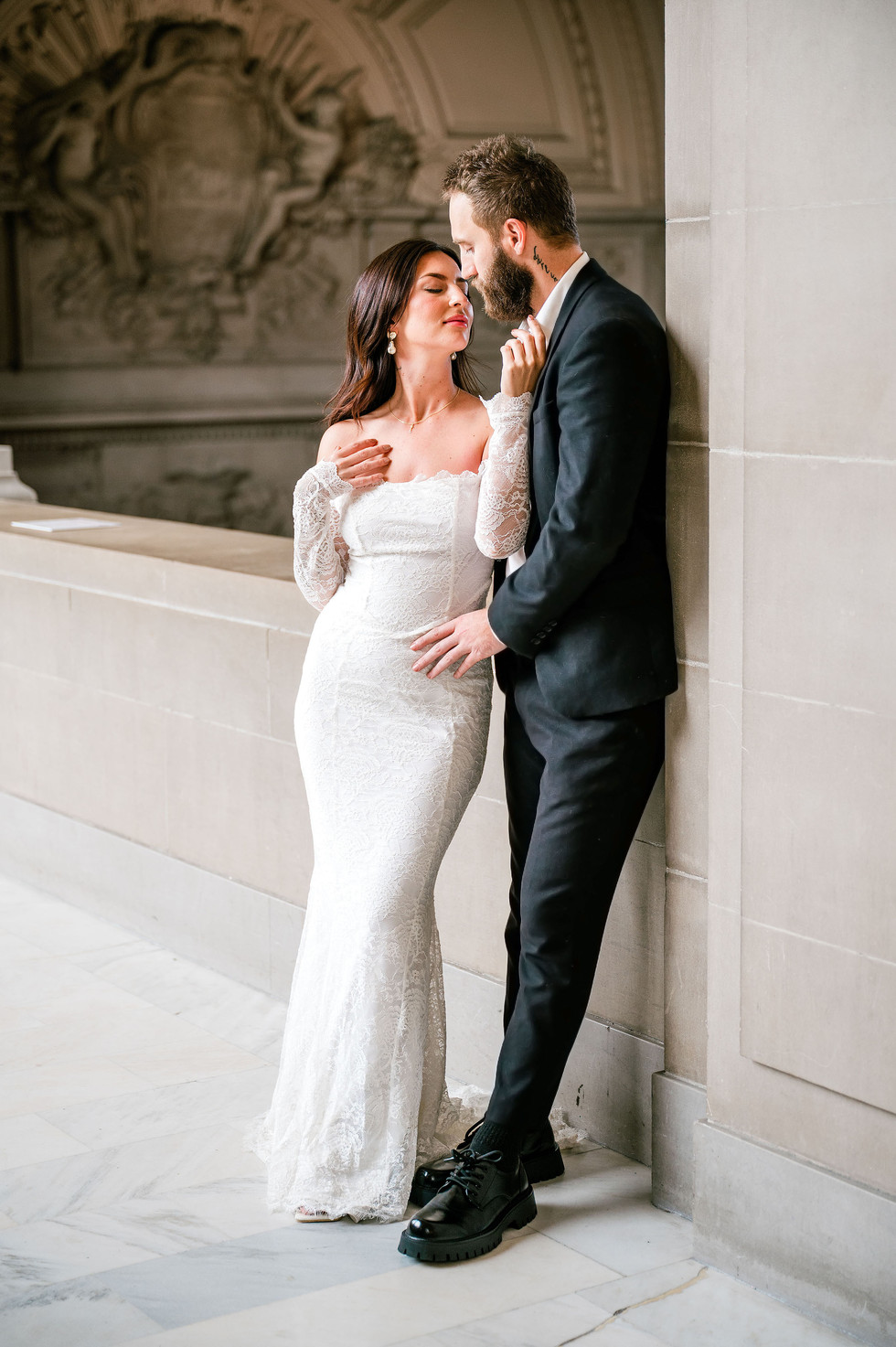 The architecture of the building offers a stunning blend of natural light and intricate design, creating endless unique and dynamic perspectives for photography If you’re considering eloping at San Francisco City Hall, take this as inspiration for how stunning and intimate your special day can be! A wedding doesn’t have to be elaborate to be unforgettable. Sometimes, all you need is love, a stunning setting, and the promise of forever.